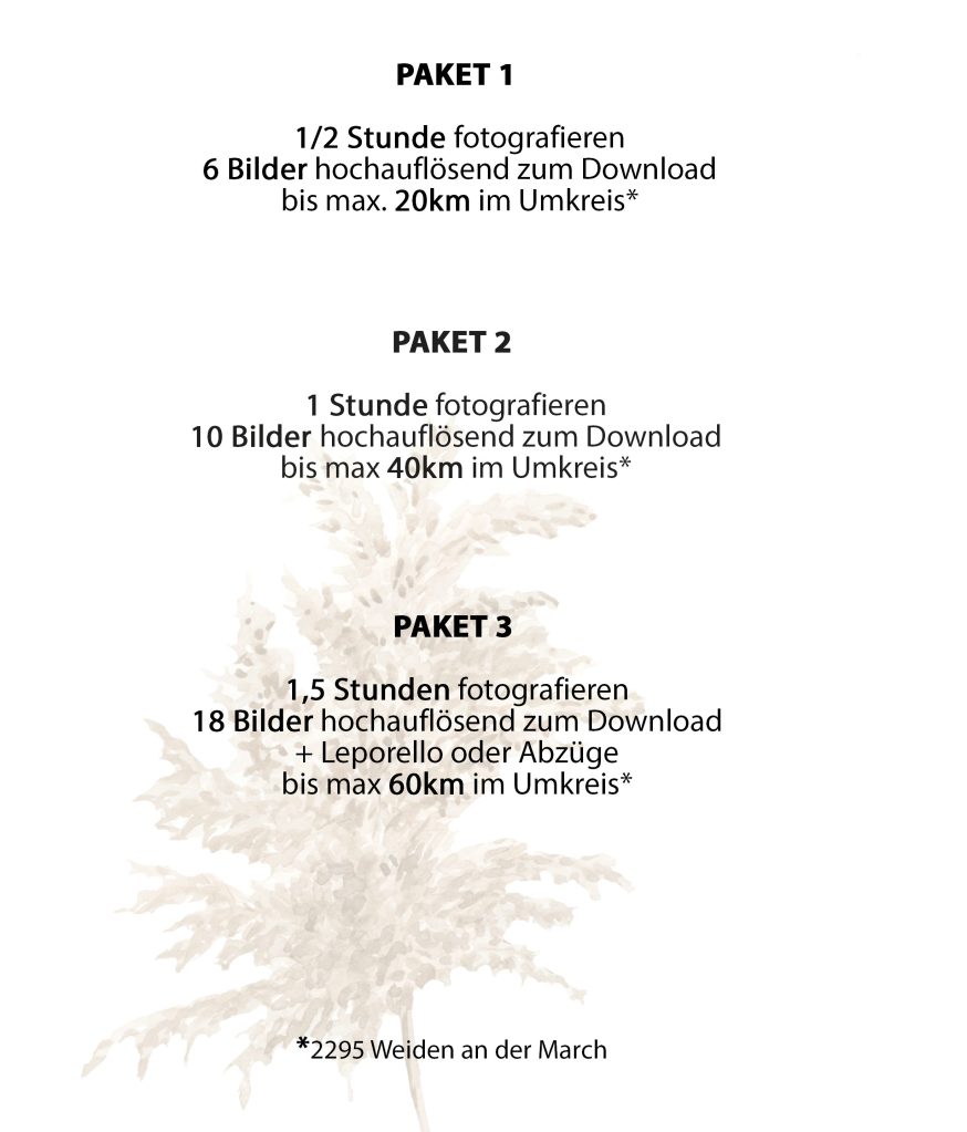(Pauschalen können erst nach dem Shooting ausgerechnet werden – je nach Bildanzahl)